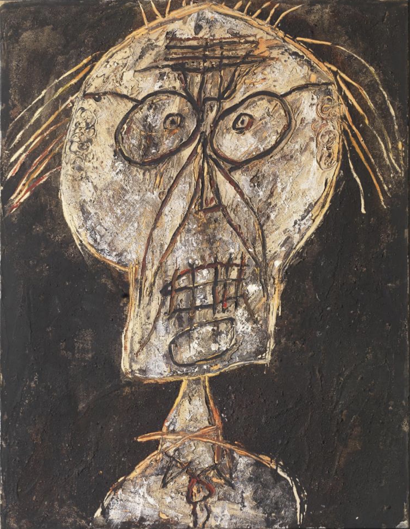 (C.-F. de Lignac, in Les Nouvelles littéraires, artistiques et scientifiques, n° 1474, jeudi 1er décembre 1955. Jean Dubuffet, « Dhôtel nuancé d’abricot, » huile sur toile, juillet-août 1947 ; les deux photographies illustrant l’article sont extraites de la publication originale)