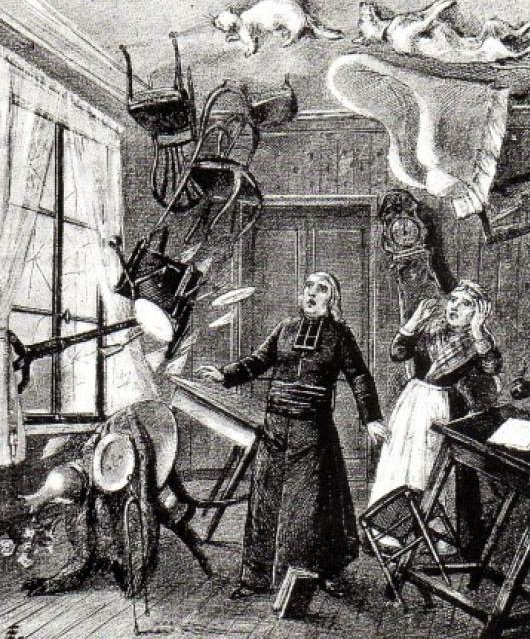 Ne sachant plus que faire et n’osant rester chez eux, ils firent un pèlerinage à Bon-Secours. Mais, chemin faisant, ils reçurent plusieurs pierres que semblait leur lancer une main mystérieuse. Le curé, à qui ils firent part de tout ce qui se passait, envoya chez eux le sacristain ou le bedeau ; tant que celui-ci fut dans la maison, il n’y eut rien d’extraordinaire, mais, au moment où il allait sortir, il reçut divers objets, et entre autres une écritoire en corne, dont il coupa plusieurs fragments, disant que cela ferait souffrir ceux ou celui qui les tourmentait. Ils se plaignirent aussi au commissaire de police ; il leur envoya un appariteur, qui leur conseilla de mettre de la cendre derrière la porte, sans doute pour voir s’il y aurait quelque empreinte faite en leur absence, mais ils n’y trouvèrent en rentrant qu’une croix. La sœur de la femme, ne pouvant croire à toutes ces choses merveilleuses, résolut de l’accompagner et de passer la nuit avec elle, le mari étant, par la nature de son travail, forcé d’être souvent absent. Mais elle fut bientôt convaincue, car plusieurs pierres furent lancées sur elle et à ses côtés ; de plus, elle reçut sur la tête un violent coup de chandelier qui faillit la renverser tout étourdie. Une autre femme, habitant un des étages supérieurs de cette même maison, vint et ne fut pas plus épargnée que les autres. Mais son mari se moqua de sa frayeur, disant que tout cela était pure imagination. Cet homme étant religieux, dit qu’il n’avait aucune crainte ; armé d’un livre de prières, il s’assit au milieu des trois femmes tremblantes, et lut à haute voix les versets du De profundis.