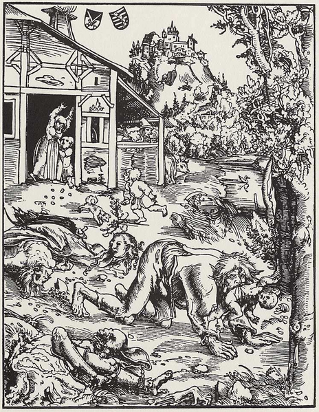 J’ignore si les lycanthropes de Poligny parcouraient effectivement les champs et les bois pendant leurs paroxysmes ; on vient de voir que le malade cité par Guillaume d’Auvergne ne bougeait pas de sa place, bien qu’il crût agir ; mais Peucer cite le fait d’un autre lycanthrope qui éventra un cheval en cherchant à abattre avec une faux un papillon qu’il prenait pour un diable.