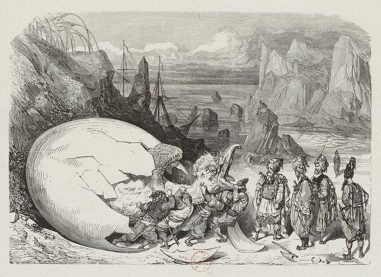 « Les marchands cassèrent l’œuf à coups de hache, »1865
