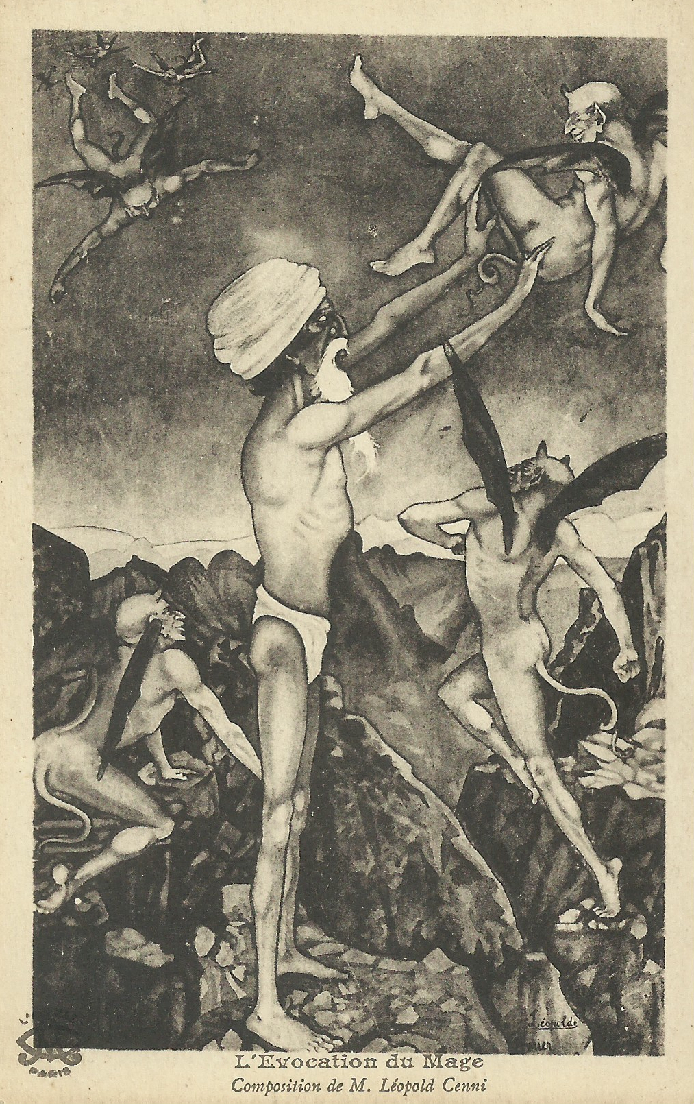 On trouve malheureusement très peu d’informations sur le peintre et illustrateur Leopoldo (alias Léopold) Cenni. Il semble être né un peu avant 1889, avoir présenté plusieurs tableaux au Salon entre 1908 et 1914, avant de s’établir en Allemagne, sans doute après la guerre.