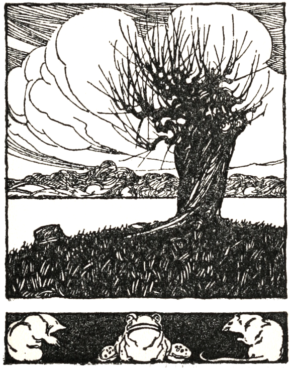 Après avoir amarré leur bateau à un saule, les deux amis descendirent dans ce royaume silencieux couleur d’argent. Minutieusement, ils explorèrent les haies, les creux des arbres, les ruisseaux et leurs petits lits souterrains, les fossés et les canaux à sec. Ils traversèrent la rivière et continuèrent leurs recherches de la même manière en remontant le cours de l’eau. La lune, sereine et détachée dans un ciel sans nuage, les aidant de loin ; bientôt, lentement et comme à regret, elle s’abaissa vers la terre, elle les quitta et de nouveau le mystère enveloppa les champs et la rivière. Cependant, un changement s’opérait peu à peu. L’horizon s’éclaira, les champs et les arbres reparurent sous un aspect différent, se dégageant du mystérieux qui les enveloppait. Tout à coup, un oiseau siffla, puis se tut ; une brise légère s’éleva, agitant les roseaux et les joncs. Rat était assis à l’arrière du bateau ; soudain, il se leva, dressa l’oreille, osant à peine respirer. Taupe, qui scrutait la berge tout en ramant lentement, à petits coups, regarda curieusement son ami, se demandant ce qu’il avait.