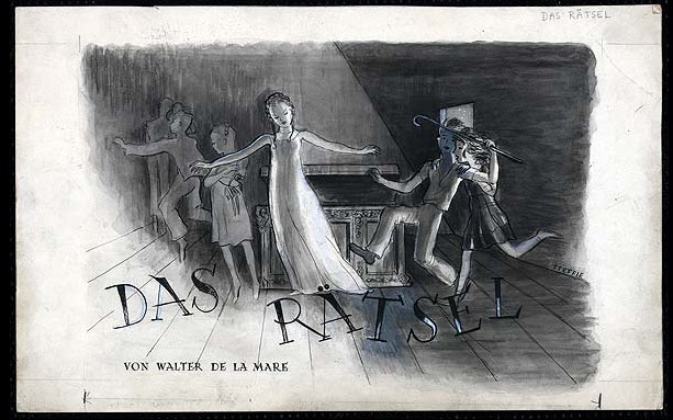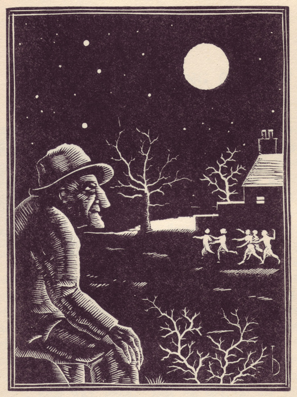 (Walter de la Mare, « The Riddle, » traduit de l’anglais par G. Jean-Aubry, in Les Nouvelles littéraires, artistiques et scientifiques, treizième année, n° 675, samedi 21 septembre 1935 ; gravures sur bois de Bold pour le recueil Broomsticks & Other Stories, 1925)