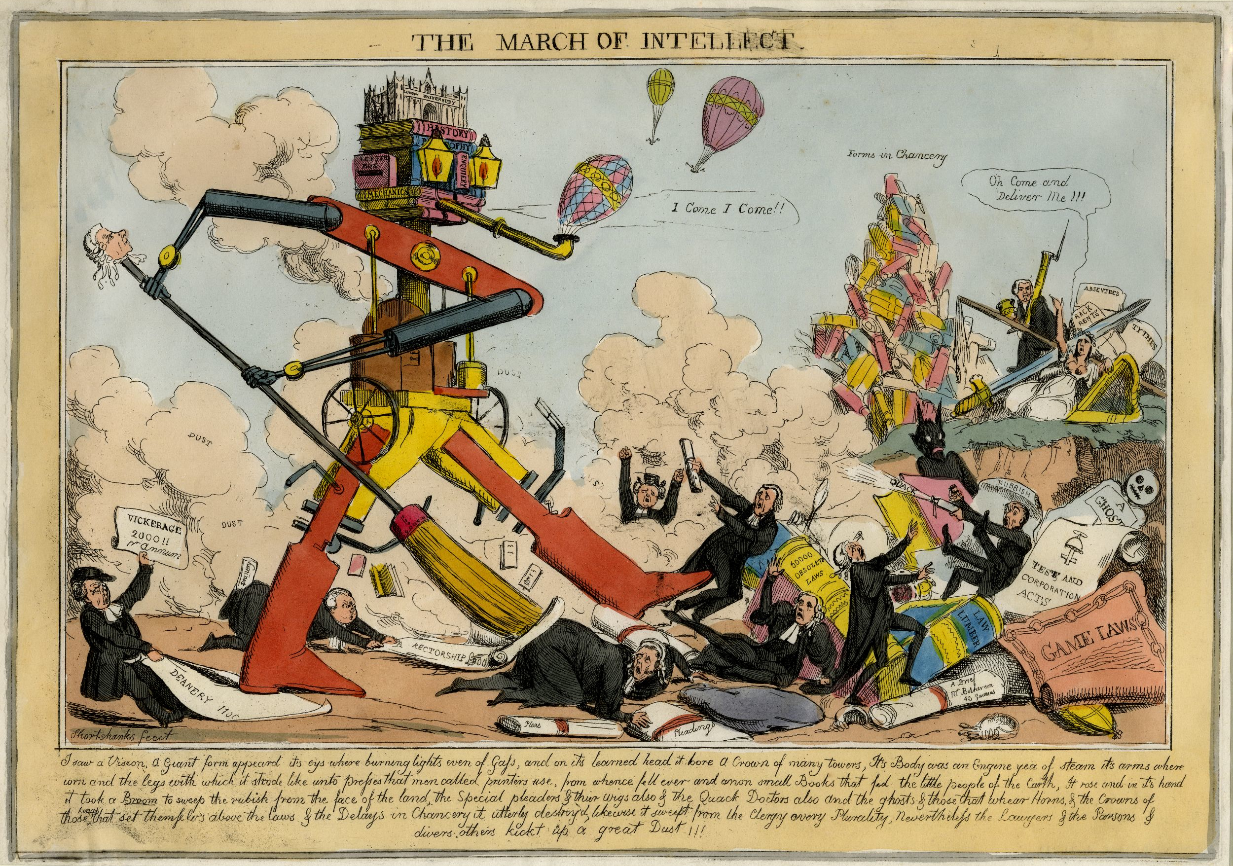 Gravures de Paul Pry [William Heath], de la série « The March of Intellect, » c. 1828
