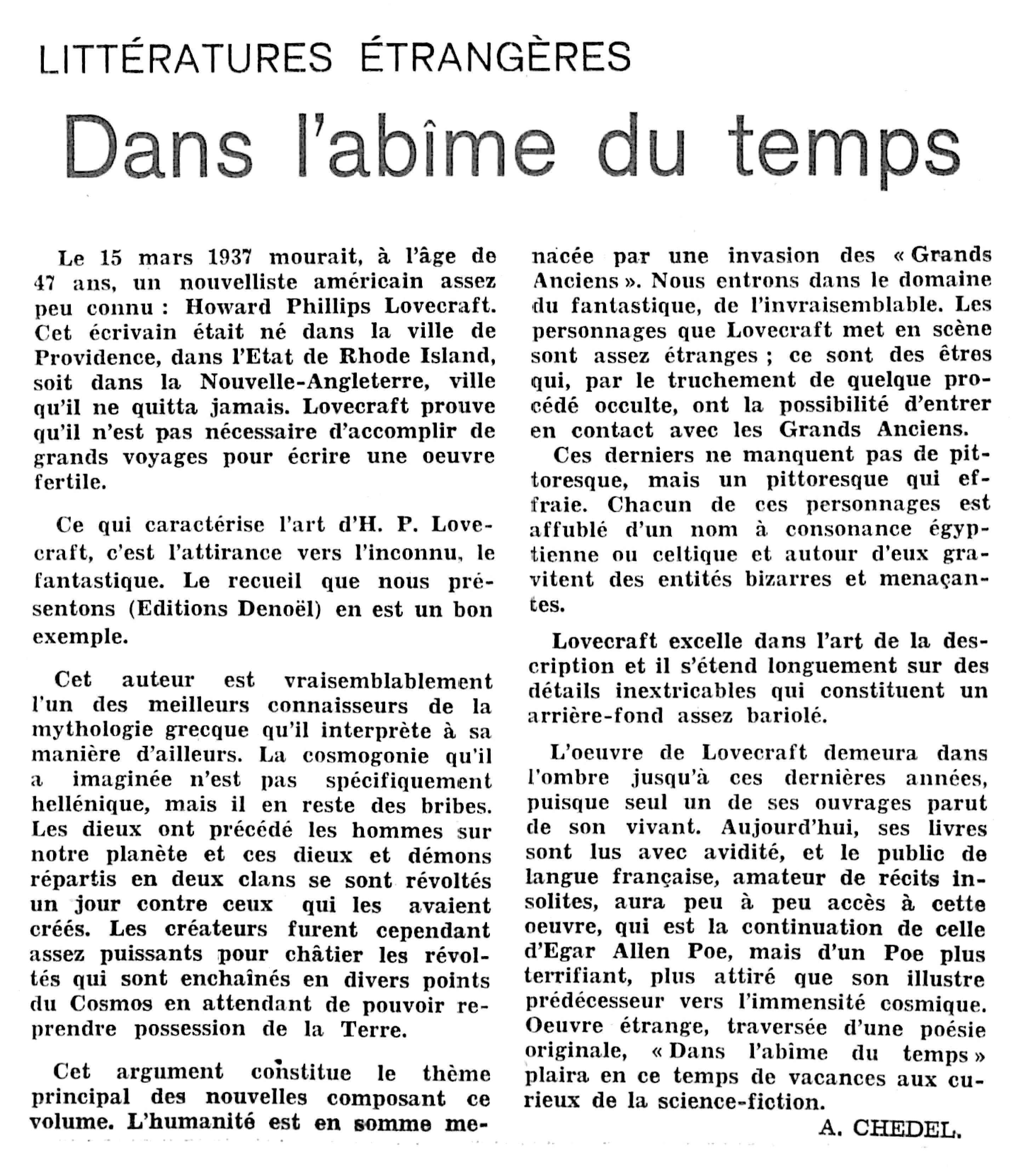 (in L’Impartial, quotidien neuchâtelois et jurassien paraissant à la Chaux-de-Fonds, quatre-vingt-troisième année, n° 26278, jeudi 15 août 1963)