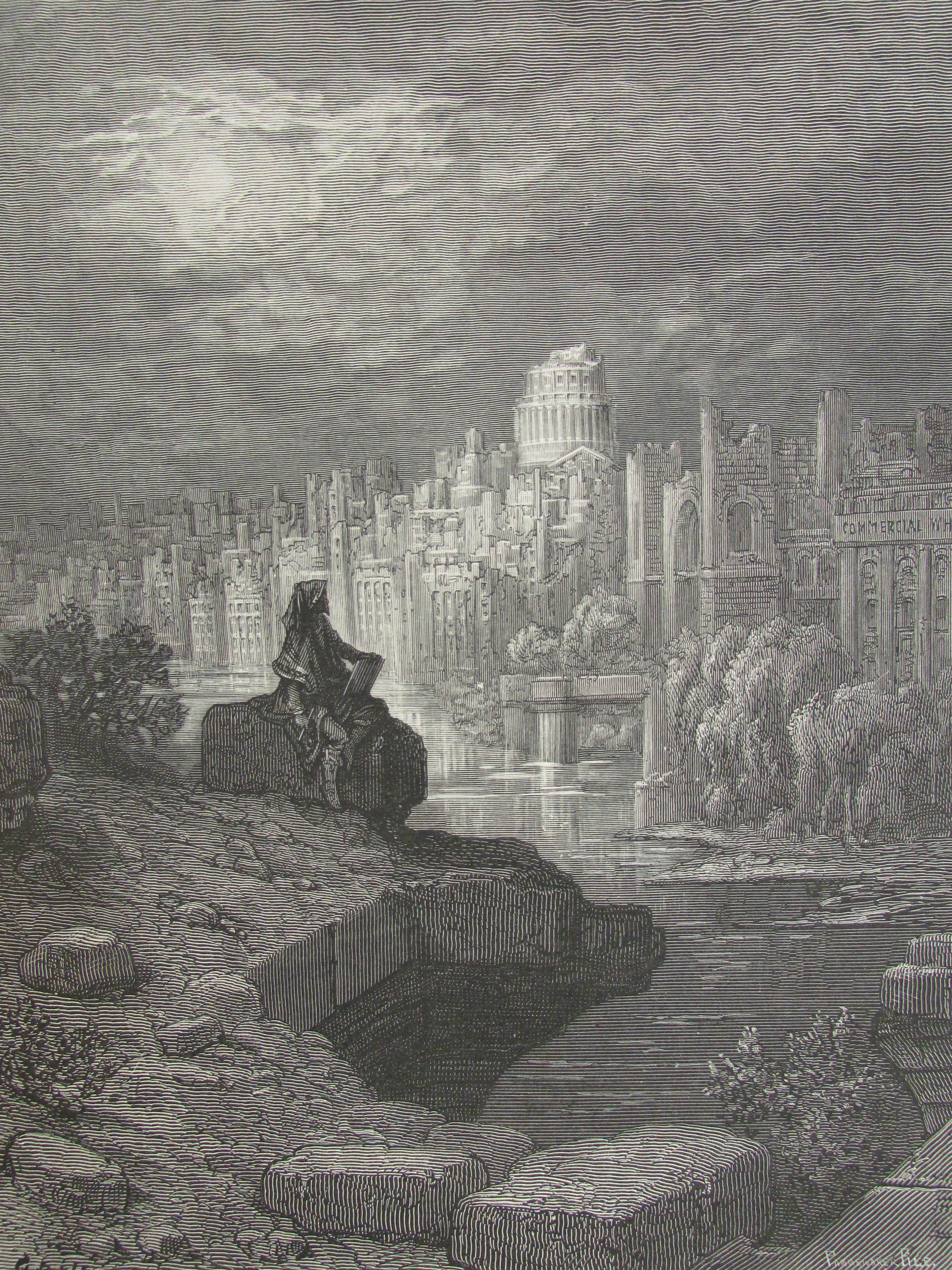 (in Guelma-Journal, journal républicain indépendant, première année, n° 11, jeudi 29 mars 1894 ; repris dans le Journal du dimanche, trente-sixième année, n° 2630, 22 avril 1894. Gravure de Gustave Doré, « Les Ruines de Londres, » extraite de London: A Pilgrimage, 1872 ; cul-de-lampe de Martin van Mæle)