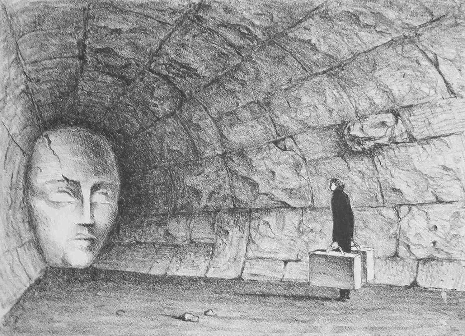 Le sol était uni, poli et brillant par endroits, et l’homme, s’approchant de la muraille fut frappé des formes géométriques des blocs et des monolithes épars au pied des gradins. Partout des cubes, des parallélépipèdes, des pyramides. Les lignes courbes semblaient être bannies de ce paysage et la rigidité des formes avait quelque chose de tragique et de formidable.