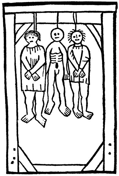 Il aperçoit enfin un gibet tout dressé.
