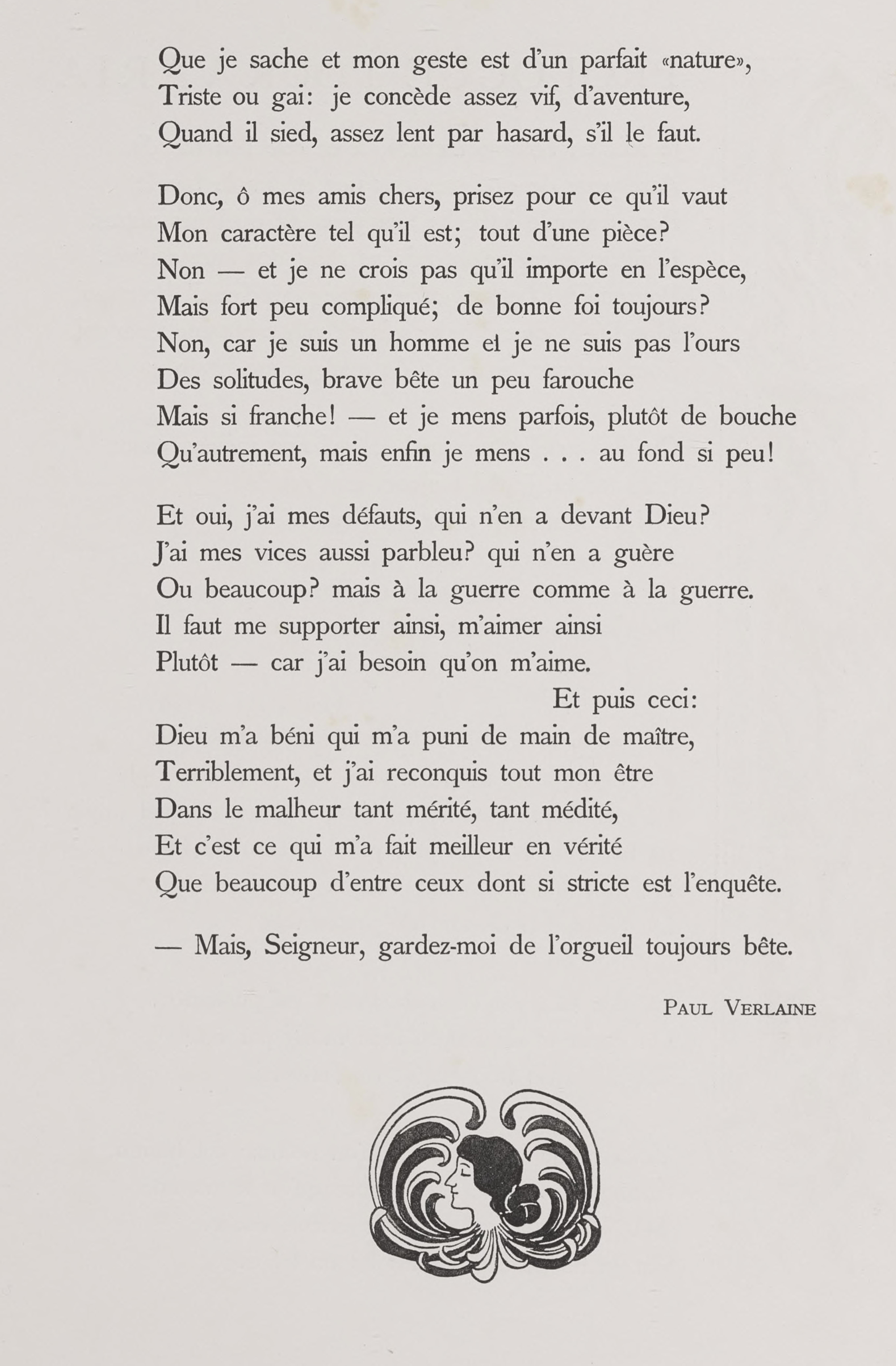 (in Pan, n° 1, Berlin : April-Mai 1895 ; repris dans Invectives, sous le titre : « Mon Apologie, » Paris : Léon Vanier, 1896)