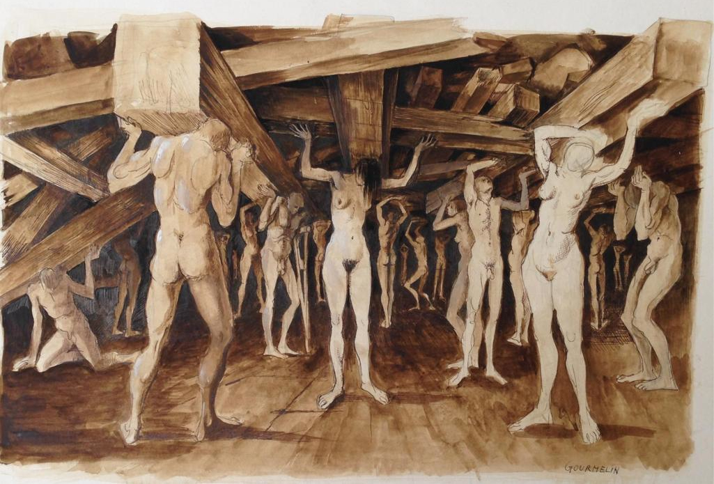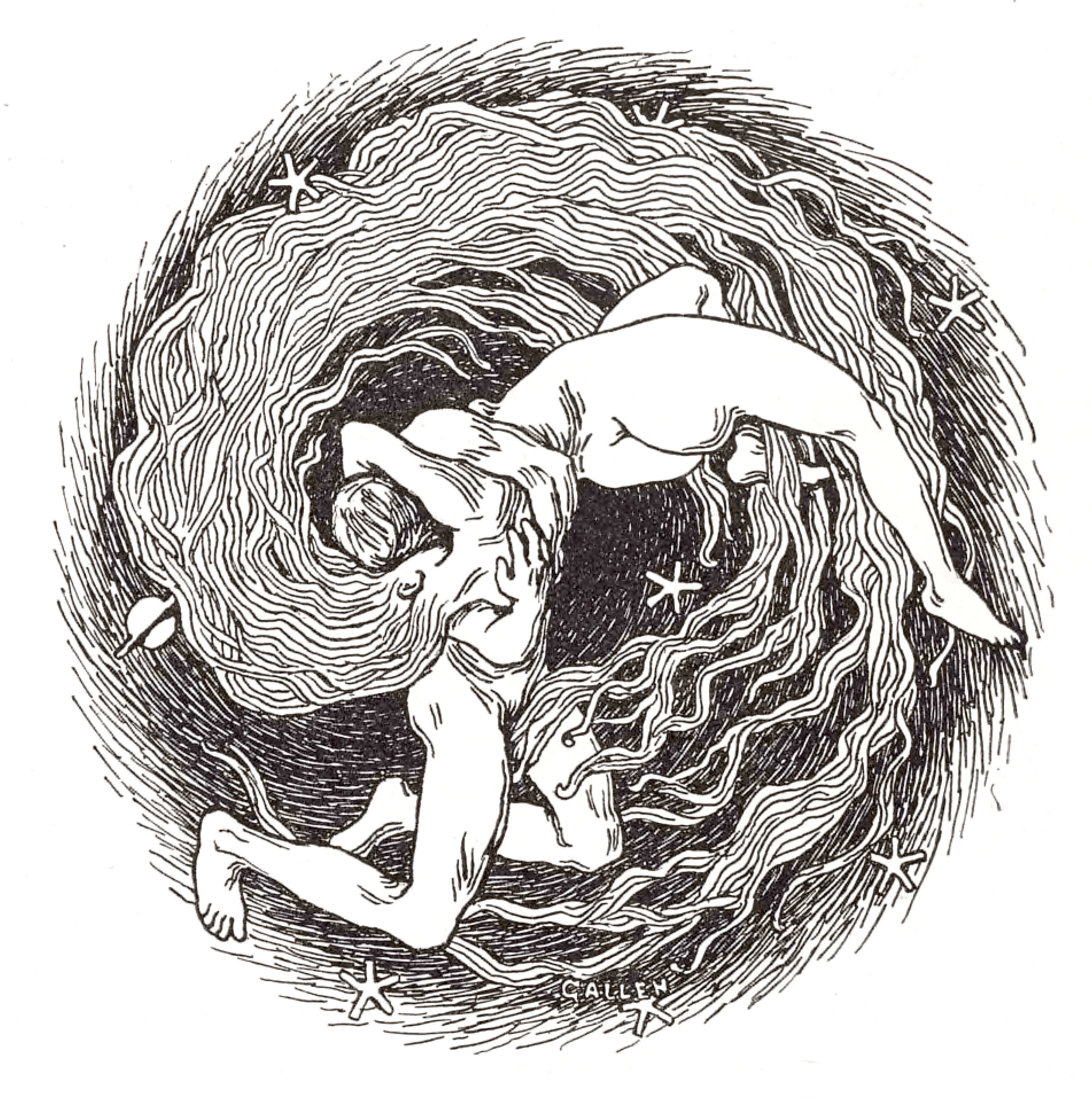 (Arthur Holitscher, traduit de l’allemand par Auguste Achaume, in Les Semailles, revue mensuelle de sociologie et d’art, n° 1, 15 janvier 1902 ; illustration de Jean Gourmelin, « Le Grenier, » sépia et plume, 1970 ; gravure de Gallen pour illustrer « Das Königslied » de Paul Scheerbart, in Pan, première année, n° 1, avril-mai 1895)