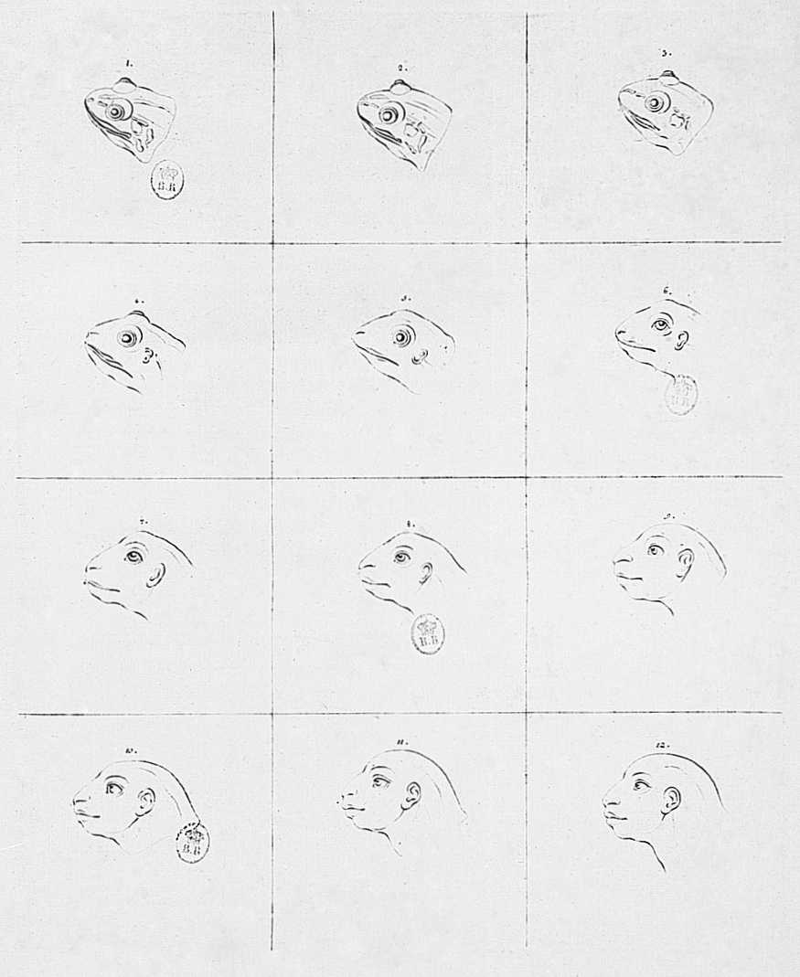 Lavater a bien pu calculer d’instinct, lorsqu’il a fait voir combien peu de transitions deviennent nécessaires pour conduire un profil de grenouille au profil magnifique de l’Apollon de Belvédère, qui est, dit-on, le beau idéal. Vingt-quatre générations qui se perfectionneraient avec persévérance arriveraient en effet du type crapaud au type Apollon ; et l’on voit tous les jours, à l’appui de cette assertion, des villages où l’espèce est laide s’embellir progressivement dès qu’il arrive quelques circonstances favorables qui pressent ce résultat.