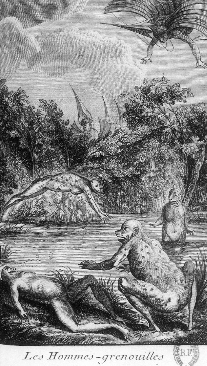 Ainsi, en y réfléchissant, nous nous sommes sentis tout à fait disposés à croire la nouvelle doctrine d’un grand savant de l’Allemagne, qui, ferme sur ses longues observations, prétend que le monde autrefois était couvert par les eaux, qu’il n’avait que des habitants aquatiques, et qu’après qu’il se fut un peu séché, les premiers hôtes de l’élément solide furent des grenouilles. Il ajoute que les grenouilles, en se polissant, devinrent peu à peu des hommes ; il démontre que l’espèce humaine descend infailliblement de la grenouille et il raisonne très pertinemment là-dessus. Ainsi, il ne faut plus que nous soyons surpris de voir tant de nos frères ressembler à des crapauds. La figure s’est un peu arrondie, mais nous avons encore les bras et les jambes de notre origine ; nous nageons comme la grenouille ; nous avons pris pour l’agilité un juste milieu entre la grenouille et le crapaud. Nous avons fait des idiomes, inventé l’imprimerie et les voitures à vapeur. Mais nous avons perdu l’habitude de la vie amphibie. Voilà du moins ce que dit le docte Allemand.