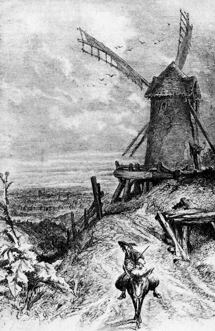 Je ne parlerai pas de l’aspect éclatant et pascal des entours d’aujourd’hui, qui avait remplacé l’aspect si néfaste et comme « à travers des glaces obscurcies » d’autrefois, ni des ailes qui viraient actuellement dans le ciel du second moulin, jadis si immobile, et dont la présence avait mis un malaise en mon coup d’œil, mais le premier des géants noirs, celui que j’avais toujours vu le plus exactement, me semblait incomparablement plus élevé qu’en ma nuit d’octobre, « comme s’il avait grandi plus vite que les arbres, » ou qu’un insolite événement eût troublé ses proportions par rapport à la ville, et je voulus immédiatement examiner cette infidélité.