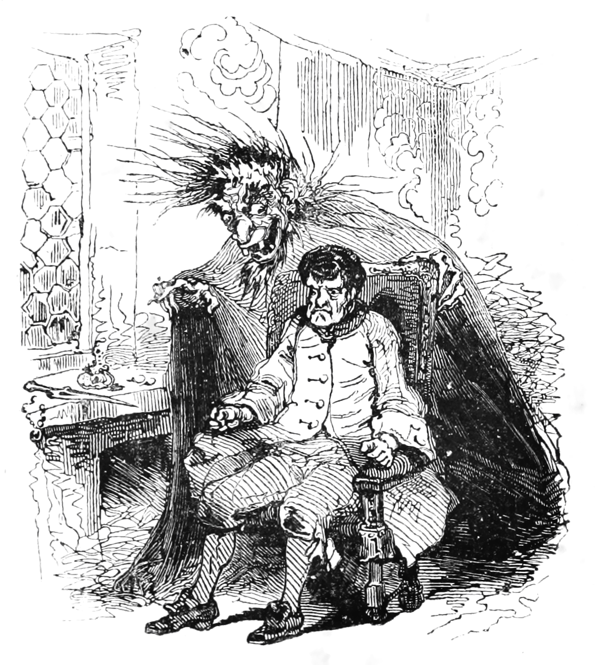 Et il courut chercher la vieille femme de charge de sa mère qu’il amena devant son bureau, et à laquelle il réitéra sa demande.