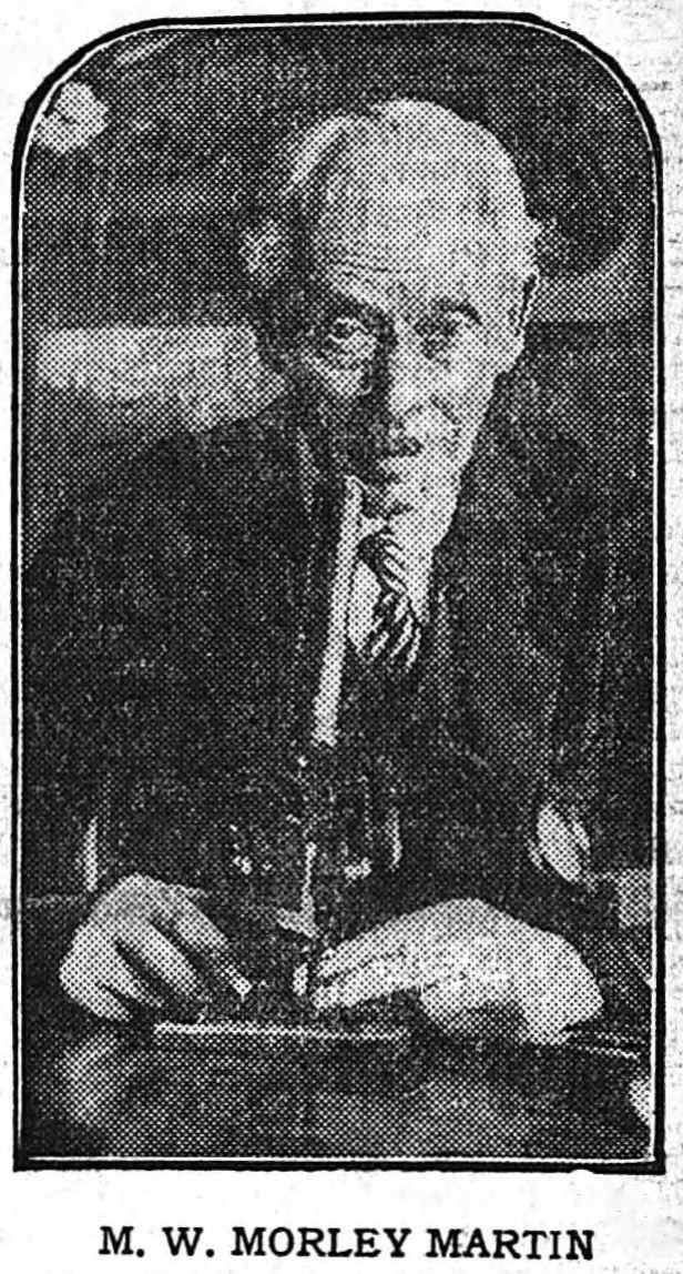 Étrange personnage que William Morley Martin, auquel Maurice Mæterlinck consacra un chapitre de son ouvrage La Grande Porte, en 1939. Après avoir habité au 16 Penryn Street, à Redruth, en Cornouailles, et travaillé comme chimiste métallurgiste dans l’industrie minière (1), il utilisa l’argent que lui rapportèrent certains de ses brevets (2) pour ouvrir une officine de pharmacie à Andover, dans le comté de Hampshire, où il consacra dès 1927 l’essentiel de ses loisirs à cultiver sa passion pour la chimie minérale.