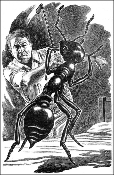 Non, la terre n’avait pas, sous la lune, cet éclat sombre et métallique ! Tout doucement, les vagues avançaient, se précisaient et, après une heure d’attente immobile, Julien Vidal put deviner, avec un hérissement de tout son être, les têtes brunes des fourmis géantes.