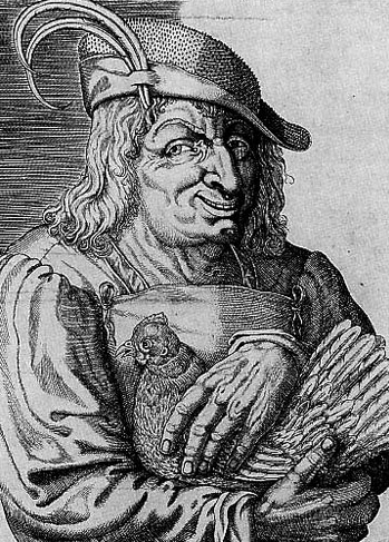 (Octave Béliard, « Les Contes du Petit parisien, » in Le Petit Parisien, journal quotidien du soir, cinquante-troisième année, n° 18858, mardi 16 octobre 1928 ; « Le Tâte-poule, » gravure du maître HSD, XVIe siècle)