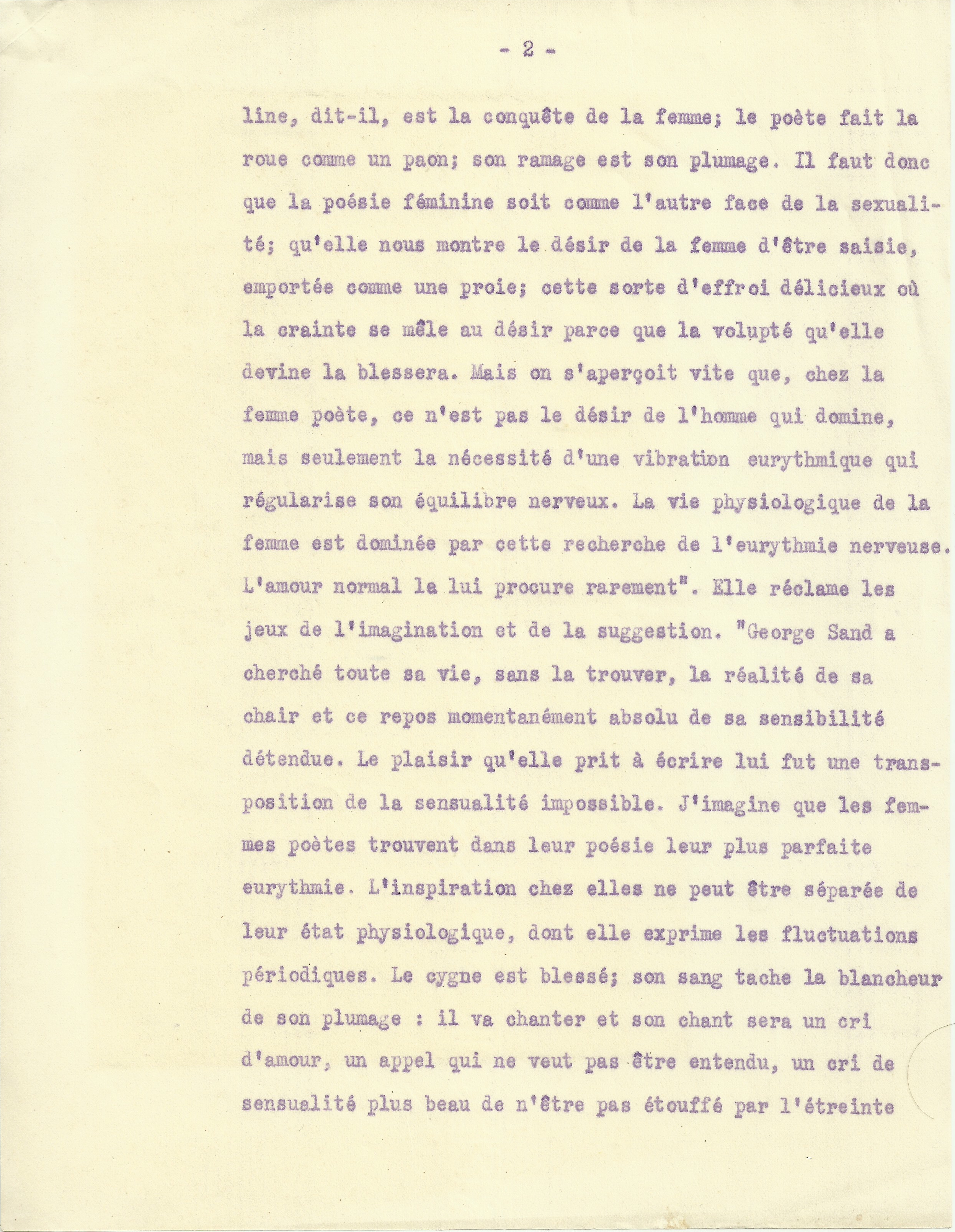 Si nous admettons ces prémices, nous ne nous étonnerons point d’avoir à enregistrer une dissemblance entre les productions des deux sexes, en littérature ou en poésie, en matière philosophique ou politique, en art ou dans les sciences ; nous oserons même la prévoir et l’attendre comme une éventualité probable et nous nous abstiendrons, autant que possible, d’espérer un autre résultat : ce qui nous épargnera du temps perdu et des efforts plus ou moins stériles.