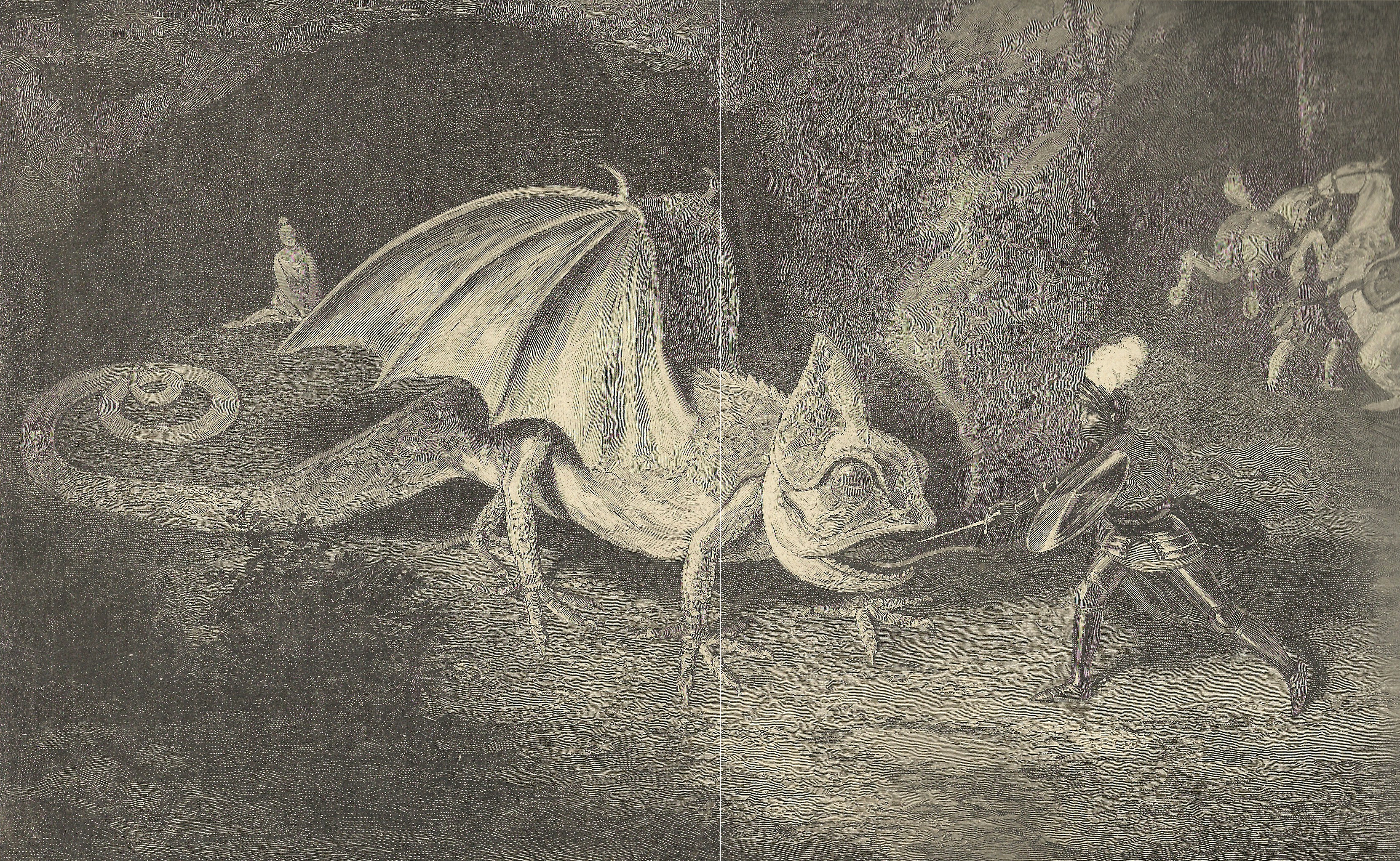 Adolf Oberländer, « Der Kampf mit dem Drachen, » d’après la ballade de Schiller, 1883