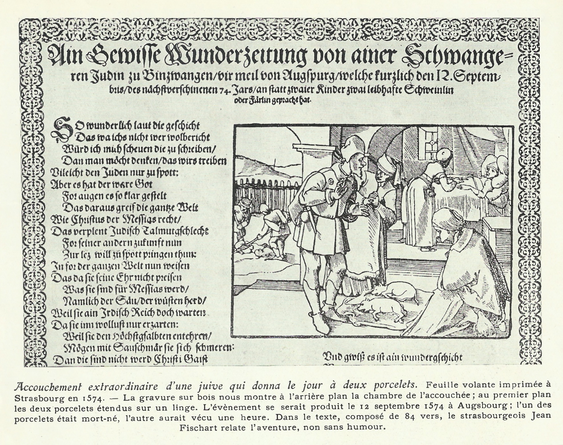 On ne doutait pas, jadis, qu’il n’y eût des femmes qui accouchassent d’animaux divers. Pline parle d’une Romaine, nommée Alcippe, qui accoucha d’un éléphant, et d’une esclave qui donna le jour à un serpent. Lycosthène, dans son Prodigiorum Ostentorium Chronicon (Bâle, 1557), cite deux Italiennes qui, au XVe siècle, mirent au monde, l’une un chien, l’autre un chat. Thomas Fienus, dans son traité De Viribus Imaginationis (Leyde, 1635), parle d’une femme qui, pendant sa grossesse, ayant désiré ardemment manger des moules, accoucha d’une fille qui avait deux valves en guise de tête : ces valves s’ouvraient de façon à recevoir la nourriture, et l’enfant vécut jusqu’à l’âge de onze ans ! Thomas Bartholin – vir facillimus in recipiendis historiis et mire credulus, a dit de lui Haller – conte l’histoire dans ses Centuries (1661) d’une dame noble de Hersmar qui accoucha d’un gros rat, lequel, au grand étonnement des assistants, s’enfuit à toute vitesse, et ne reparut plus. Il ajoute qu’une Polonaise accoucha de deux petits poissons, sans écailles, qui, à peine nés, se mirent à nager dans l’eau aussi naturellement que des poissons ordinaires.