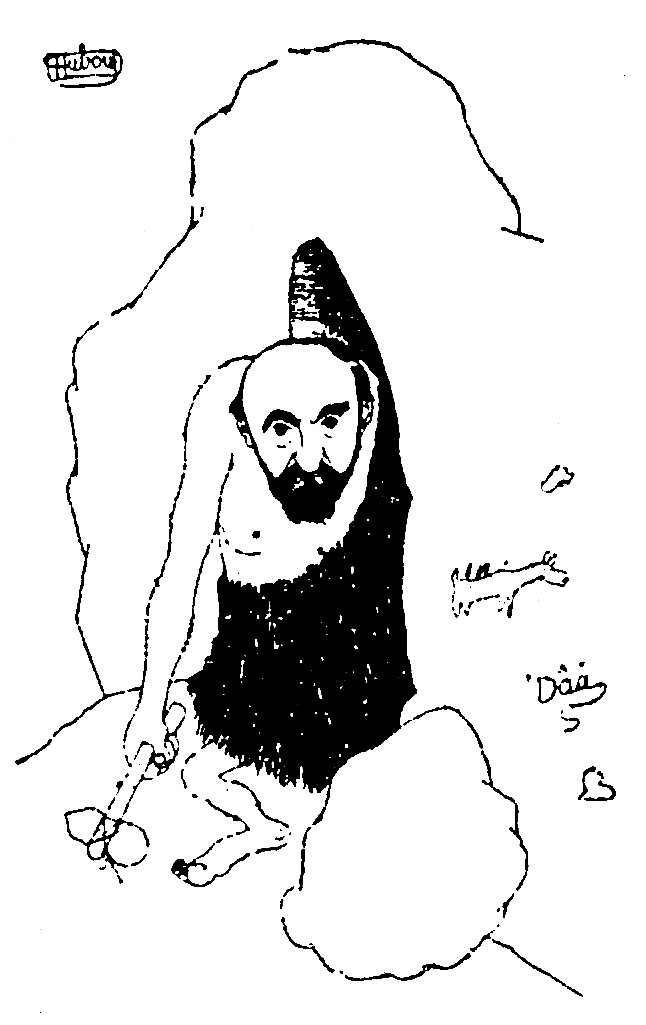 Un faune ? Ah ! mais non. Ce front haut et pâle, ce nez volontaire, cette barbe byzantine… C’est bien cela. J’abolis le veston, le faux col et tout ce qui fait le contemporain. Je l’habille d’un manteau de pourpre. Une couronne fermée, le globe terrestre à la main, et voilà le vrai Rosny, Un empereur byzantin descendu de quelque très vieille icône.