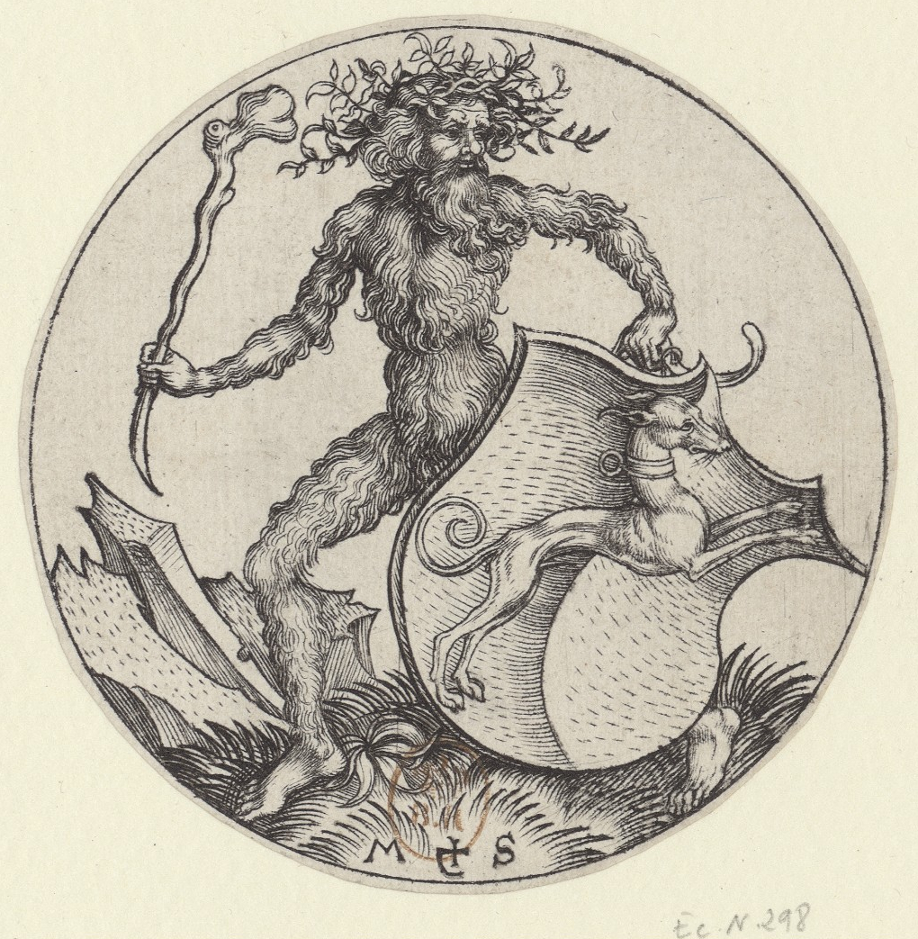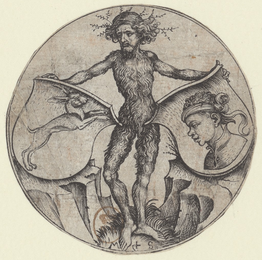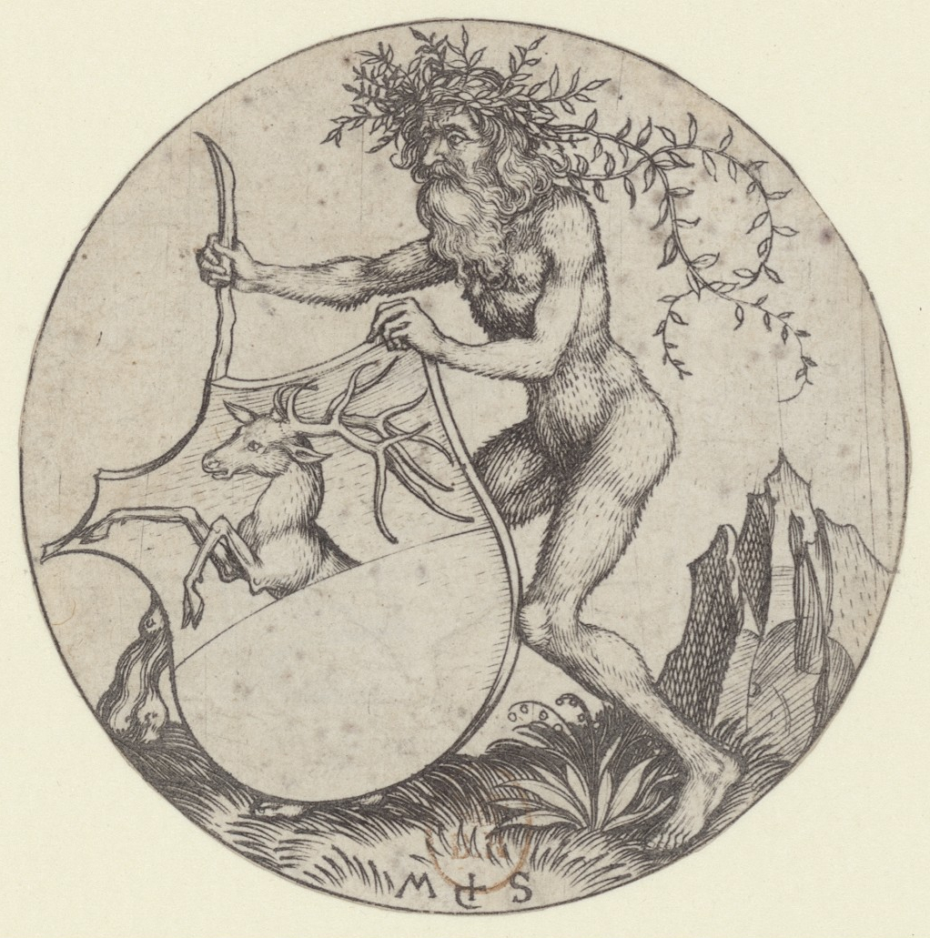 (Maurice Leblanc, in Gil Blas, quinzième année, n° 4990, lundi 17 juillet 1893. Estampes de Martin Schongauer : Homme sauvage portant un écu au lévrier ; Homme sauvage tenant un écu au cerf ; Homme sauvage tenant deux écus, l’un au lapin, l’autre à la tête de Maure. Source : Gallica)