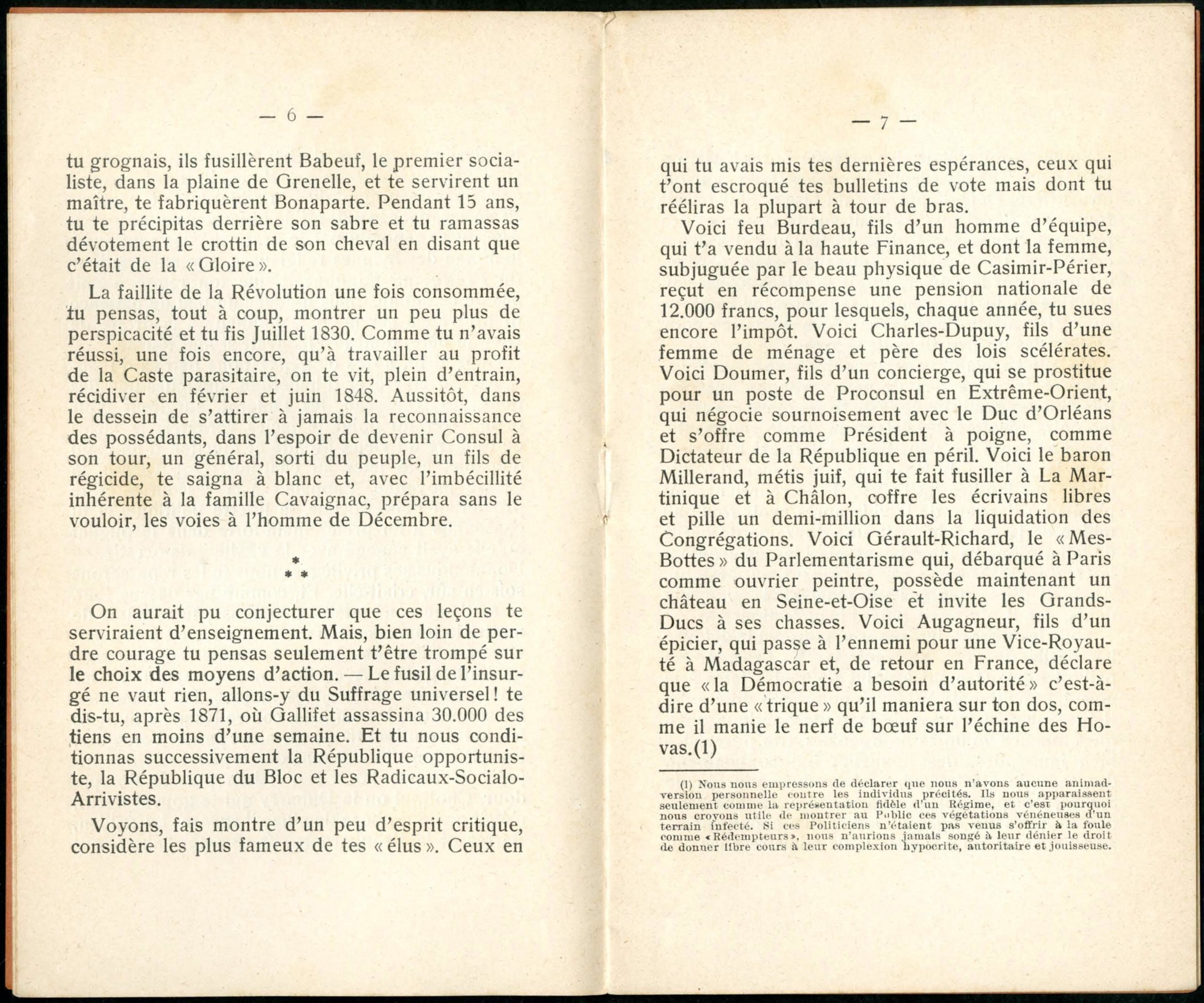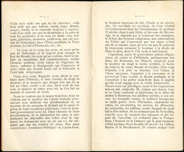 Le picador, à trois pas du monstre, lance en tête, voulut obliquer. Mais l’auto se tourna soudain. Et le picador disparut. J’eus l’impression de voir se refermer la bouche entre la base et le sol, gueule finissant en laminoir. L’auto lourde continua sa marche en avant, avec quelques soubresauts qui parurent être de joie. Quand elle eut passé, je vis sur le sol une large marque noire tachée de rouge, comme un grand insecte écrasé, au milieu des débris à plat de ses élytres et de son corselet de fer.