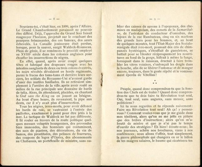 Tout à coup, je vis un des gros rats noirs obliquer légèrement, comme essayant de dépasser celui qui le précédait. Il se rapprocha jusqu’à le toucher. J’eus peur d’un choc effroyable à une vitesse qui dépassait, malgré son apparente douceur, toutes les vitesses connues. Je suis sur que si le premier coureur s’était arrêté subitement, les deux se seraient aplatis en lame mince.