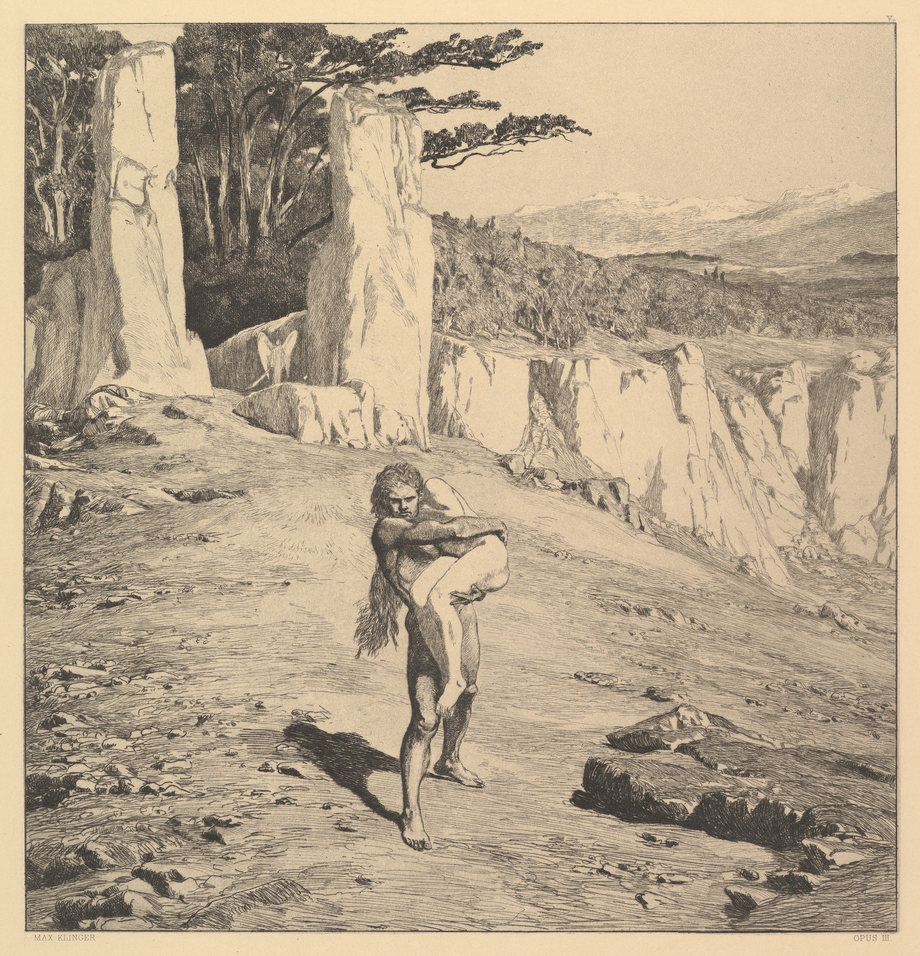 Sur les vastes jardins de l’amphithéâtre, une foule innombrable était assise, dans un grouillement confus d’où l’on voyait surgir, çà et là, des mouvements de têtes. Un vélum de soie pourpre, soutenu par de hauts mâts dorés tout autour et en haut de l’amphithéâtre, tamisait en rouge ardent la lumière du soleil. Aux interstices, des rayons passaient, découpant des bandes lumineuses dans l’assistance. L’arène était vaste et circulaire. Dix attelages de chevaux auraient pu courir à l’aise, le long de ses bords arrondis, sans se heurter, et avec tout le champ voulu. Elle était semée d’un couche très mince de sable fin ; au-dessous, par places, apparaissait la solidité du noir bitume. Le mur de circuit, très haut, et sur la marge duquel se penchaient, comme au balcon, les spectateurs avides, était percé de vastes portes, encore fermées, pareilles à celles derrière lesquelles, jadis, on entendait rugir les lions.