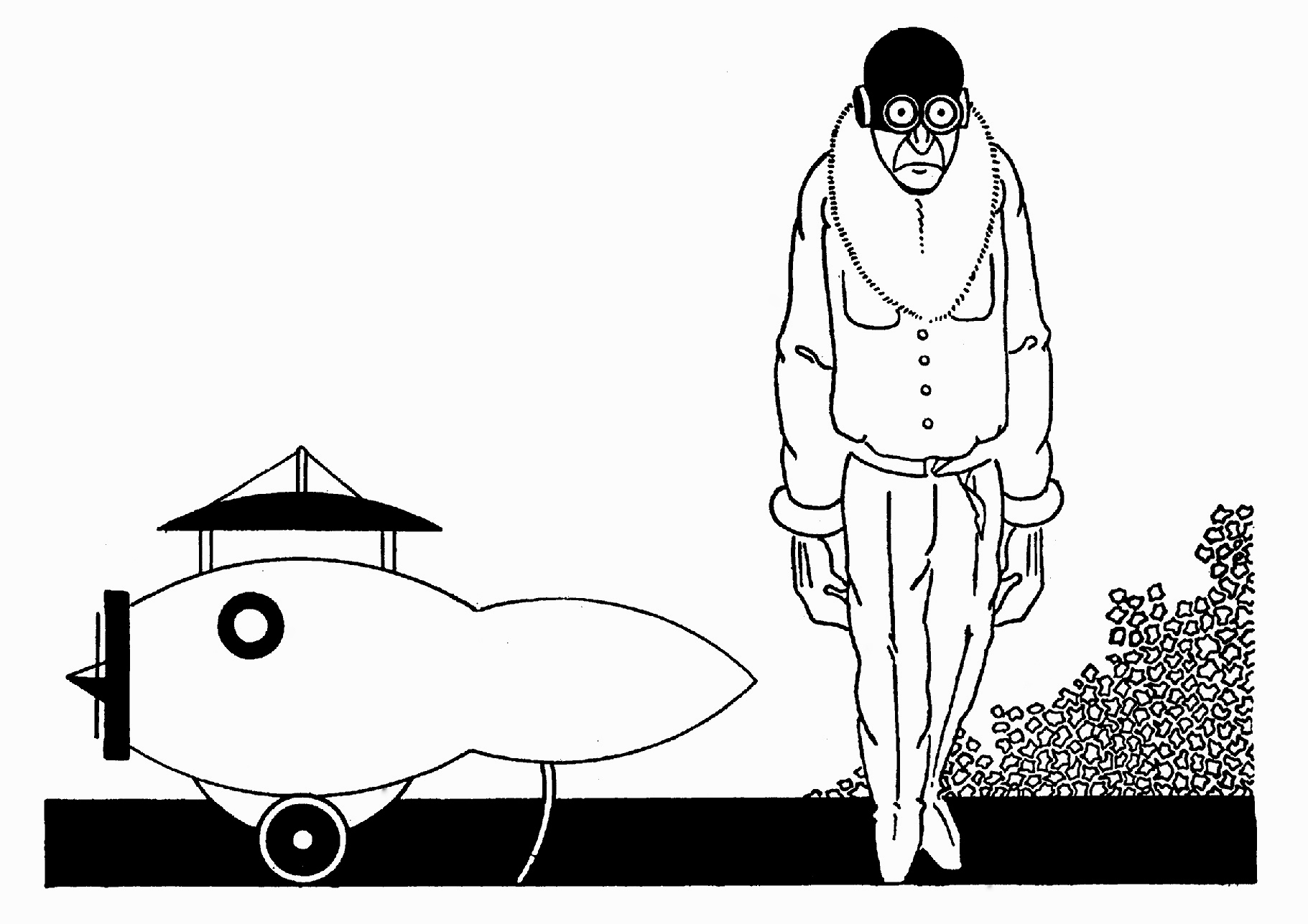 Au moment du dîner, lorsque je pénètre dans la salle à manger de la Pension suisse et de la Marine, je constate que mon chandail de laine, mon pantalon bleu, mes sandales à lanières de cuir produisent sur les convives une fâcheuse impression. Je ne tiens pas à attirer l’attention ; aussi, le soir même, grâce à l’obligeance d’un locataire qui est à peu près de ma taille, et à qui j’explique que mes malles ne sont pas encore arrivées, je puis arborer une tenue moins voyante : pantalon blanc très étroit, souliers de toile aux bouts pointus, veston d’alpaga gris à filets bleus, large ceinture de soie formant gilet avec deux petites poches sur le ventre, cravate papillon, le tout surmonté d’un canotier de paille au ruban de jersey jaune et bleu.