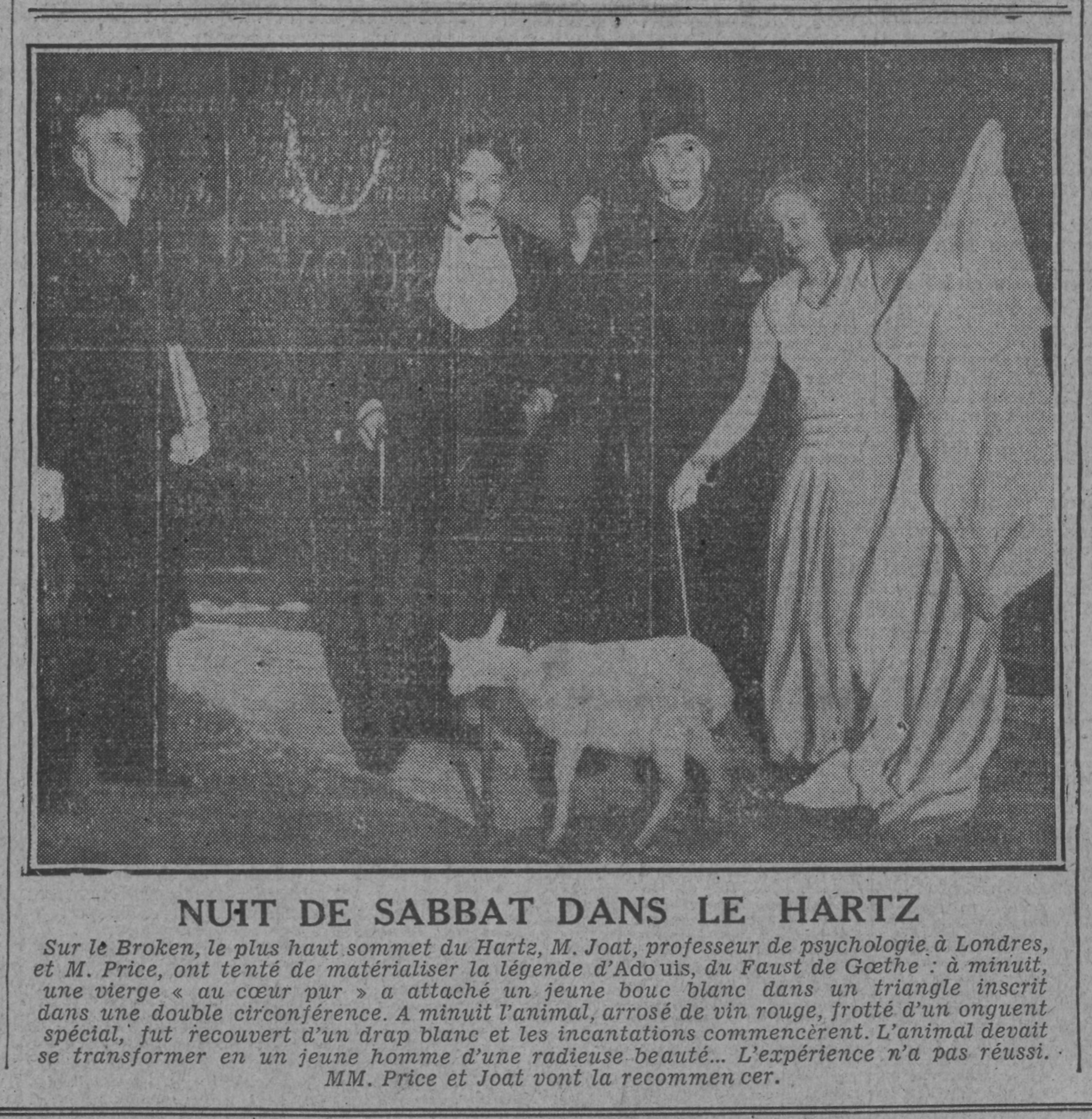 Rappelons pour mémoire que l’expérience de Harry Price a également été mentionnée par Gustave Le Rouge au début de sa chronique « Petites Recettes pour aller au Sabbat, » parue dans Le Monde illustré du 28 mars 1936, et déjà publiée ici même :