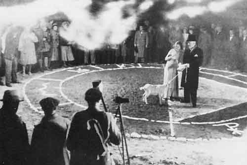 À minuit exactement, l’animal fut recouvert d’un drap blanc, tandis qu’on allumait un feu de branches sur lequel on épandait de l’encens, puis les assistants prononcèrent en latin les incantations prescrites.
