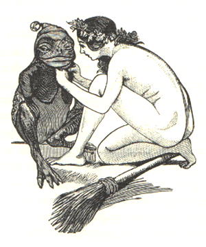 Nu-pieds, enveloppée dans une robe d’une blancheur immaculée, elle doit mener avec une corde de soie le bouc dans le cercle magique. Lorsque la lune (et l’expérience magique doit avoir lieu sous la pleine lune) en montant aura atteint une certaine hauteur, elle recouvrira le bouc d’un voile magique. Puis elle le retirera et, au lieu de bouc, devra apparaître une jeune fille de beauté divine. Il est vrai que, d’après les adeptes de la magie noire, l’expérience ne peut aboutir que si la jeune fille qui mène le bouc a vraiment le cœur pur. Il était difficile de trouver une jeune fille qui aurait consenti à marcher nu-pieds, vêtue d’une robe légère sur le sommet neigeux de Brocken en plein hiver. »