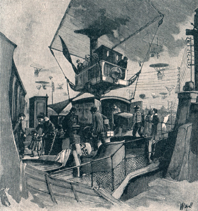 Les Terriens étaient petits, les plus grands ne dépassant pas deux mètres de hauteur. Ils s’habillaient de façon étrange ; les hommes portaient sur la tête une sorte de tour, en carton recouvert d’étoffe ; les femmes, des jardins suspendus de cinquante à soixante centimètres de diamètre ; de plus, ces dernières comprimaient leur taille au point de paraître faites de deux cônes soudés par la pointe.