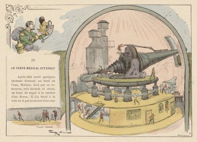 (in Cyrano, première année, n° 13, dimanche 14 septembre 1924 ; illustrations extraites de La Guerre au vingtième siècle, d’Albert Robida, Paris : G. Decaux, 1887)