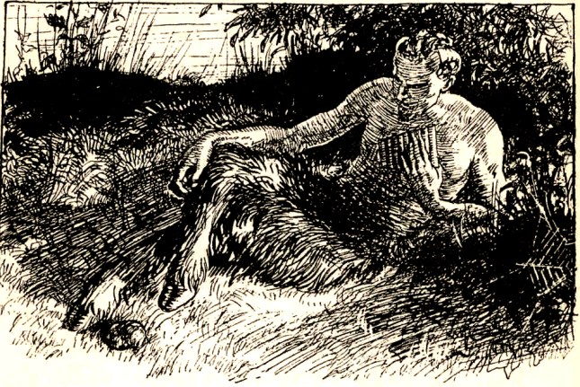 C’était une pauvresse, négligente de vains atours. Une grosse chemise d’homme, sur une vieille jupe trouée ; elle avait les bras nus, les pieds nus, elle sentait la bête et les bois.