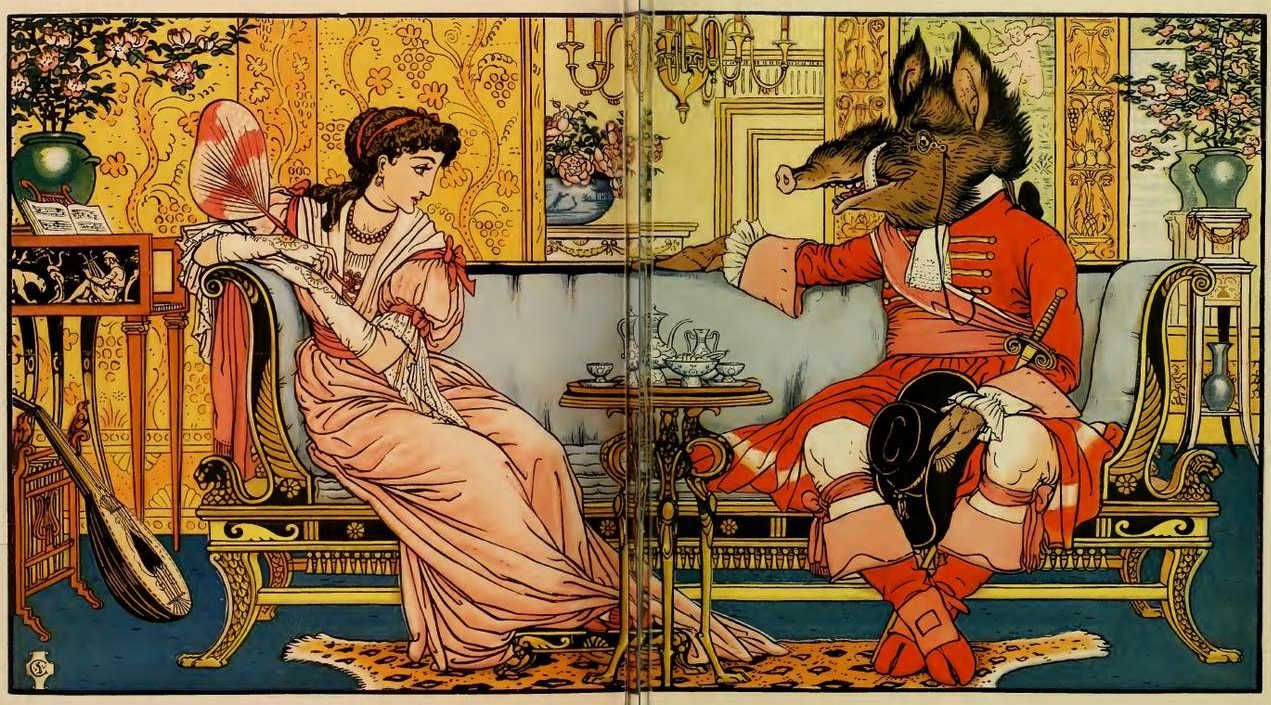 (Marcel Millet, in La Lanterne chinoise, « Bibliothèque du hérisson, » Amiens : Librairie Edgar Malfère, 1924 ; illustrations de Walter Crane pour La Belle et la Bête, 1875)