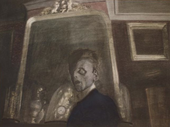 (Robert-William d’Everstag, in La Semaine littéraire, vingtième année, n° 969, samedi 27 juillet 1912 ; Louis Spilliaert, « Autoportrait au miroir, » encre de chine, lavis, pinceau, aquarelle et crayon de couleur sur papier, 1908)