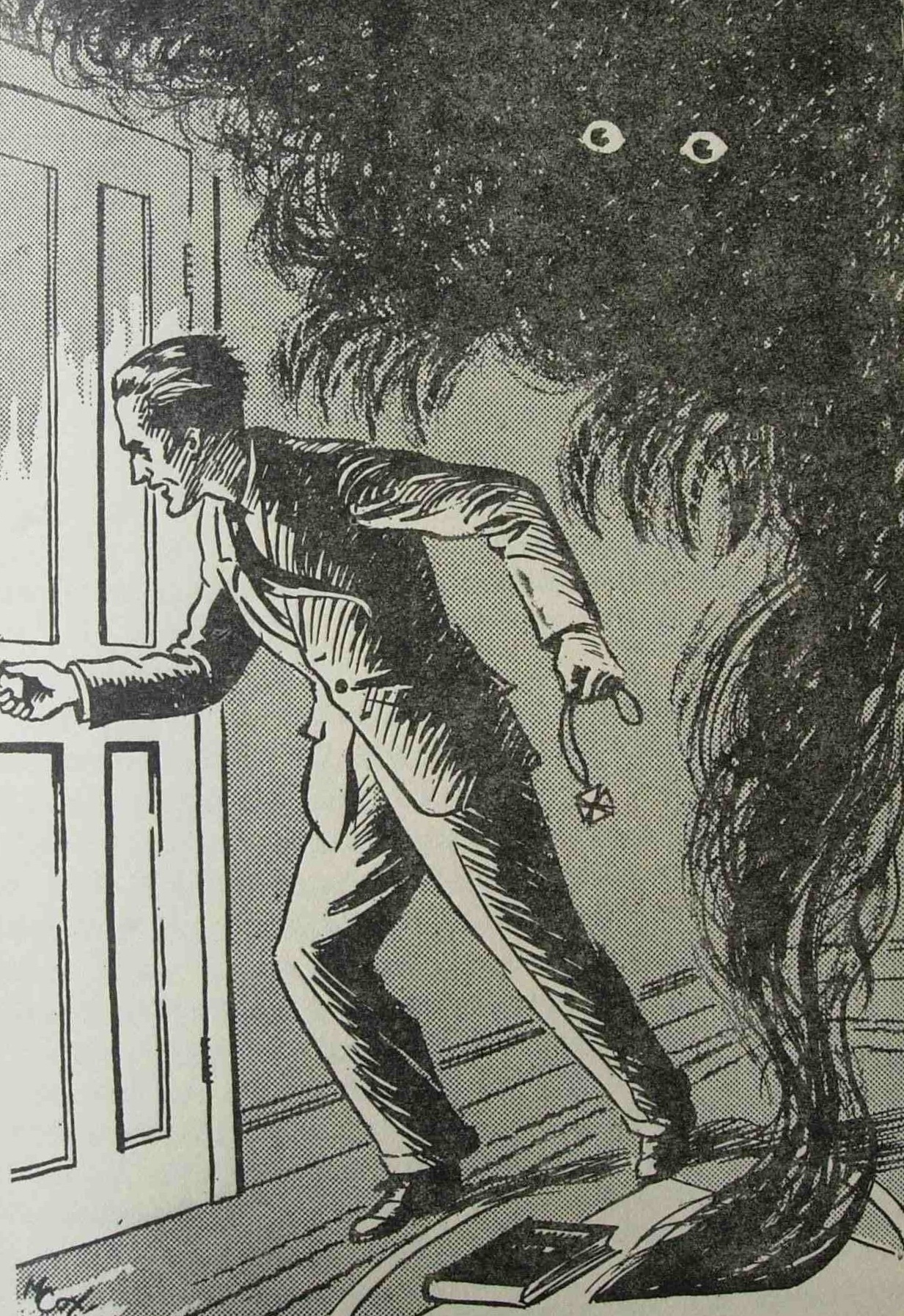 Il n’avait pas plutôt prononcé ces paroles, qu’il entendit le bruit dégringoler l’escalier et vit la porte de la cuisine s’ouvrir. Alors une boule noire entra, tourbillonnante, fit en une seconde le tour de la pièce, après quoi elle disparut aussi vite qu’elle était venue ; le vacarme continua dans la chambre à coucher, et tout de suite après, comme si la boule eût percé le plafond, dans les chambres du haut.