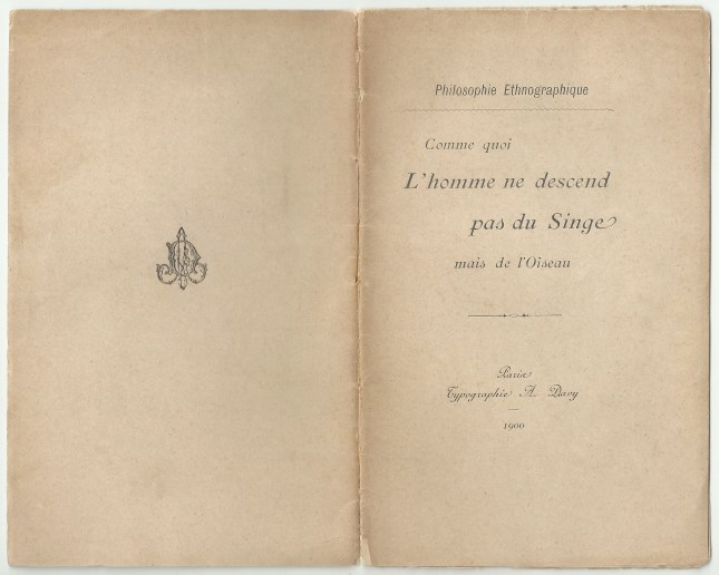 Il est un grand problème qui a divisé et préoccupé les savants des temps modernes. Y a-t-il unité ou pluralité des races humaines ? Les anthropologistes croient à l’unité ; les Darwinistes croient à l’origine simienne. Comment les uns et les autres expliquent-ils la présence de l’homme dans le nouveau monde ? Cette explication trouve un argument sans réplique dans l’origine ornithique de l’homme.