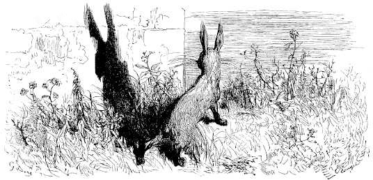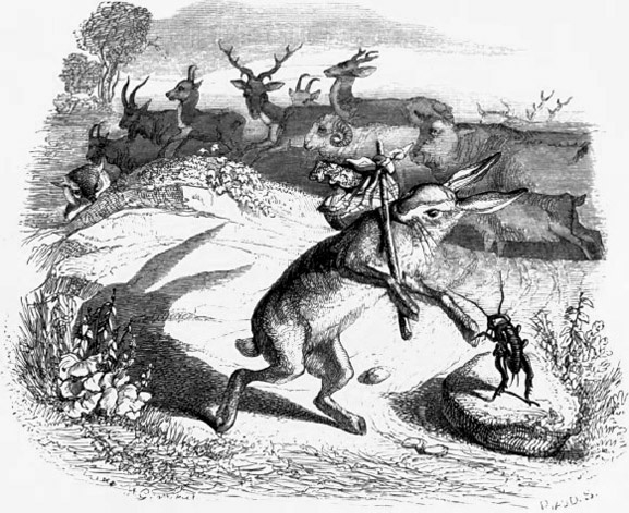 (Maurice Renard, « Les Mille et un matins, » in Le Matin, quarante-neuvième année, n° 17727, samedi 1er octobre 1932 ; illustrations de J.-J. Grandville et de Gustave Doré pour « Les Oreilles du lièvre » de La Fontaine)