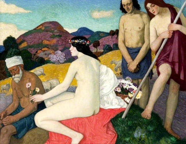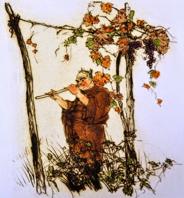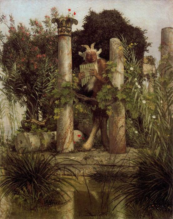 (Paul Arène, in La République française, deuxième année, n° 359, samedi 2 novembre 1872 ; conte repris dans La Gueuse parfumée, récits provençaux, Paris : Charpentier et Cie, 1876. Le sous-titre disparaît au profit d’une dédicace à Hippolyte Babou. Arnold Böcklin, « Idylle, » huile sur toile, 1875 ; les eaux-fortes d’Armand Coussens sont extraites du recueil La Mort de Pan et autres contes, Paris : Louis Carteret, 1945. Sur ce thème du saint païen, voir le joli conte d’Anatole France, « Amycus et Célestin, » que nous allons republier dans la foulée)