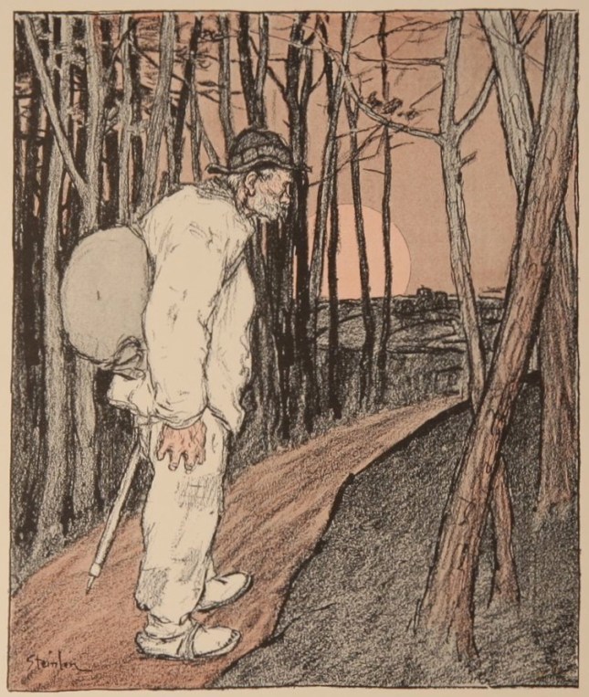 (Albert Mérat, Les Chimères, Paris : Achille Faure, 1866 ; lithographie de Théophile Alexandre Steinlen, « Le Chemineau »)