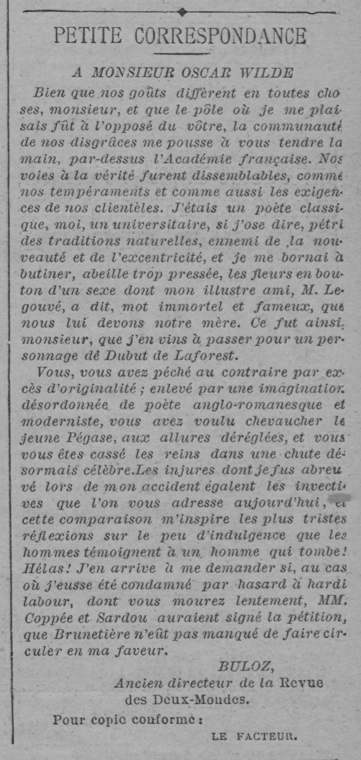 M. Ducatier s’arrêta en face de Mlle Charlotte, et le même sourire étrange, amer et mécontent, tira leur bouche.