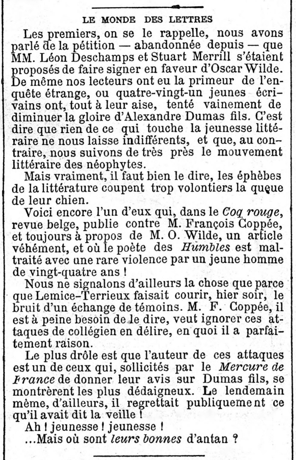 « Père, veux-tu conduire Monsieur au six ? »