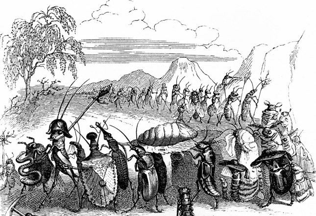 — Non, pas encore, reprit-il. Ne voyez-vous pas ces deux, là-bas ? (Et il me montrait du doigt deux fourmis.) Ce sont les deux généraux qui se rapprochent pour parlementer sans doute. »