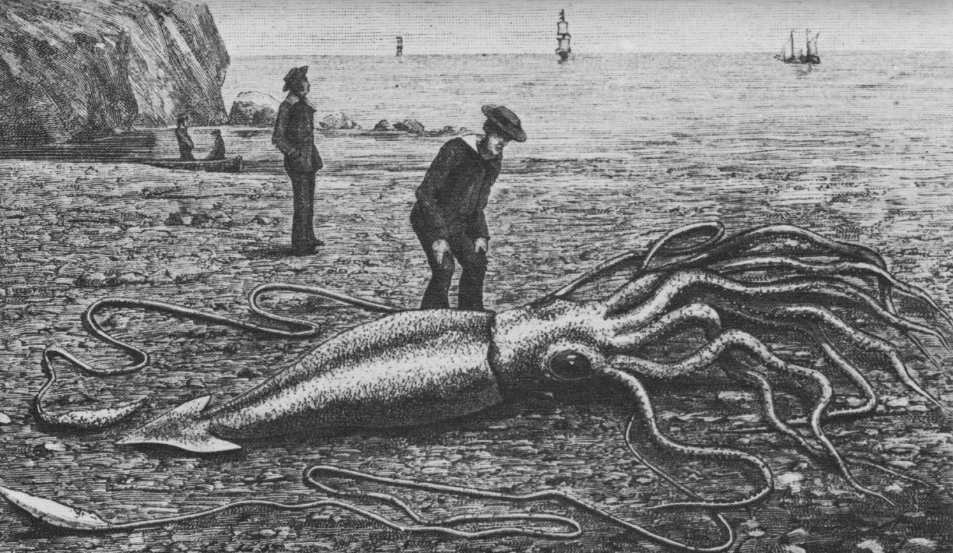 Grâce à ses tentacules pareils à des fouets gigantesques, se recourbant comme une trompe et se posant comme une griffe, le monstre marin peut atteindre une proie éloignée de dix mètres, l’enlacer, l’étreindre, l’étouffer, la porter mourante à sa gueule horrible et la dévorer.