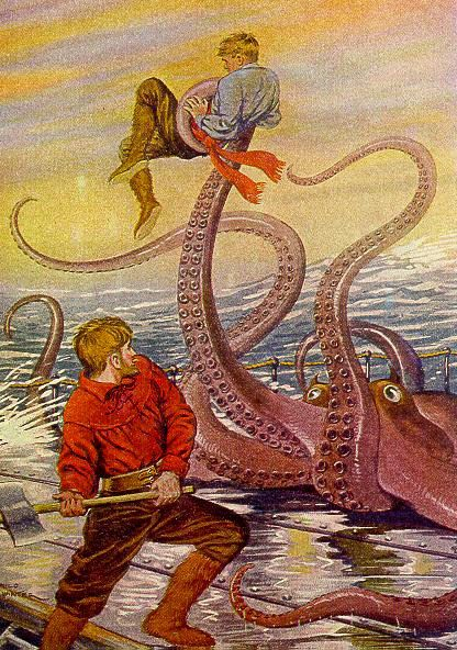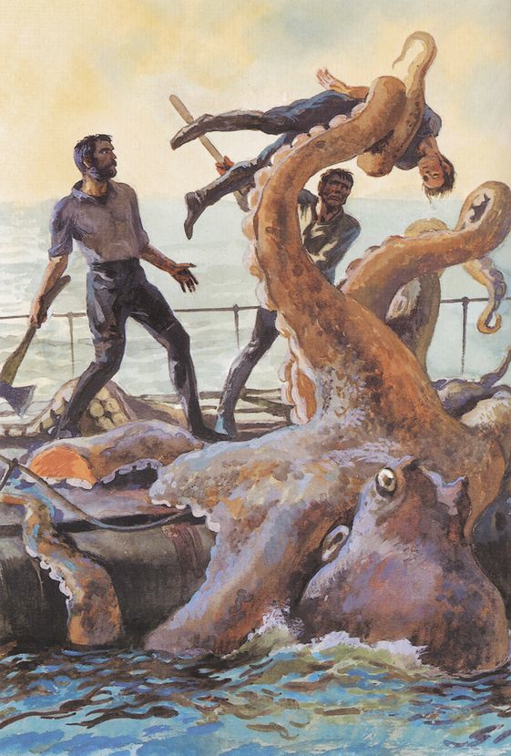 Le monstre marin avait saisi deux petits navires à la fois, dans ses puissants et formidables tentacules.