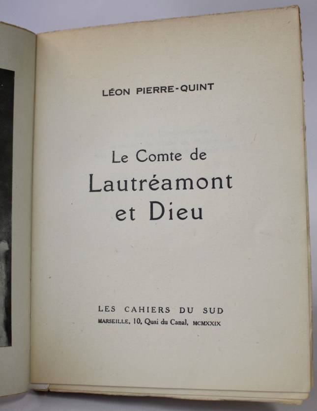 Celui-ci vient de trouver son historien définitif en Léon Pierre-Quint. De l’homme, on persiste à ne rien savoir. Les documents, les témoignages n’ont rien révélé. Ce qui subsiste, c’est Maldoror d’une part, et de l’autre l’auteur des Poésies, confondus en un même personnage.