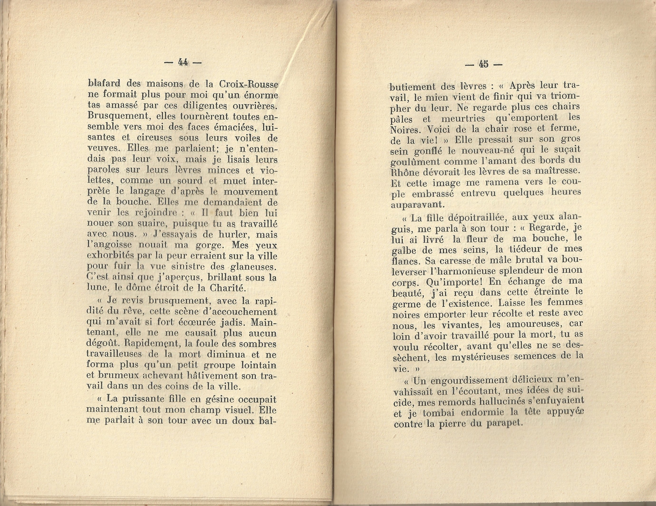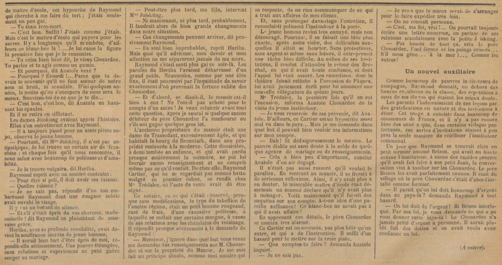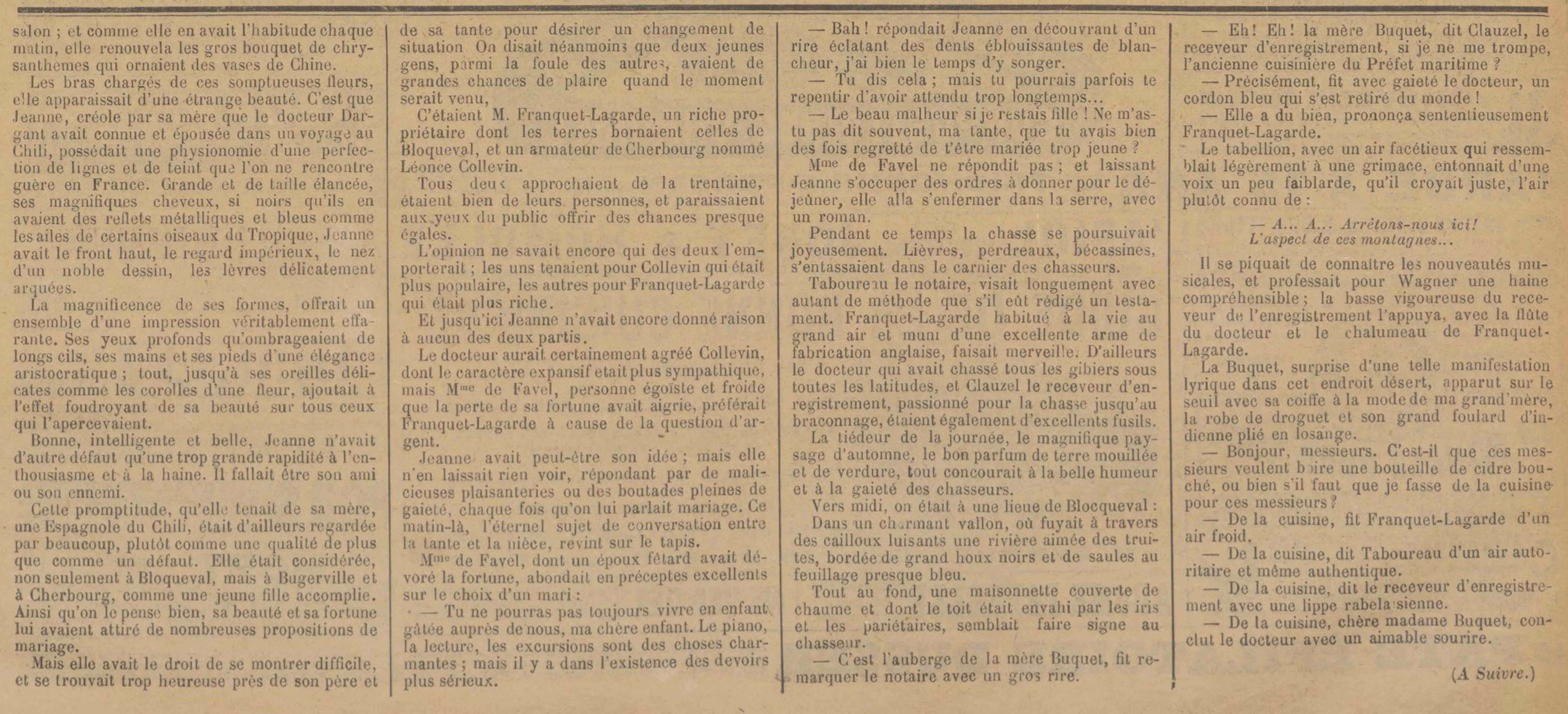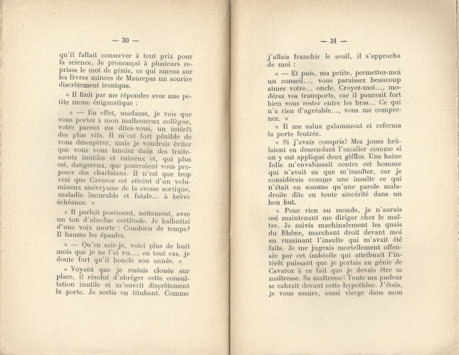 Je connais Barnavaux depuis si longtemps que je crus pouvoir m’offrir la satisfaction un peu vaniteuse de deviner la profession du personnage qu’il m’allait faire connaître ; un homme qui n’était pas riche, « mais qui avait de l’argent » ; c’était un camarade de la légion, sans aucun doute, Allemand, Anglais, Russe ou Hongrois, de souche noble et de famille puissante, venu s’engager chez nous, au premier ou deuxième étranger, pour des motifs qu’on ne saurait jamais.